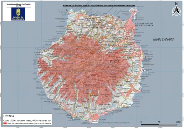 Recreatiegebieden, kampeerterreinen, hostels en rustplaatsen van het wegennet : Het gebruik van vuur is verboden, zowel op plaatsen die daarvoor geschikt zijn, als via elk type draagbaar systeem. Toegang voor voertuigen op GC-216 is verboden, behalve voor buren en openbare diensten, evenals het gebruik van het kampeerterrein Llanos de la Mimbre en het recreatiegebied Tamadaba.