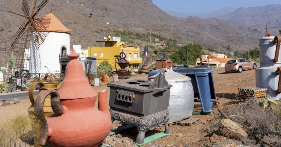 Via de GC-200 brengt mijn roadtrip me naar het stadje Mogán. In dit stadje is een van de oudste windmolens van het eiland te zien. Wanneer je tussen metersgrote koffie- en theepoten in Mogan loop dan voel je je even Alice in Wonderland.