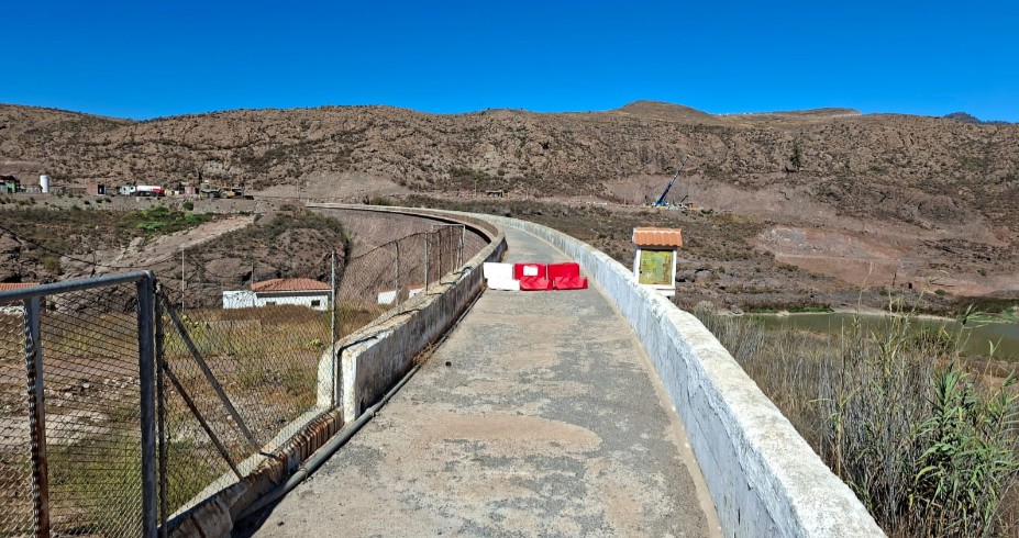 De koffie genoten we in Tunte en daarna vertrokken we onder een stralende zon vanuit Chira voor de tocht. Direct na de start volgde een stevige klim waarna we over een mooi pad langs de berg en een afgrond op een makkelijk en goed begaanbaar pad kwamen, welk ons een mooi uitzicht bood op het meer. Daarin stond helaas maar weinig water. Er waren wel werkzaamheden om tunnels te maken voor toevoer van extra water en het opwekken van waterkrachtstroom. Door deze werkzaamheden mochten we de dam niet over en moesten we aan dezelfde kant van het meer, maar wel via een ander pad, weer teruglopen.