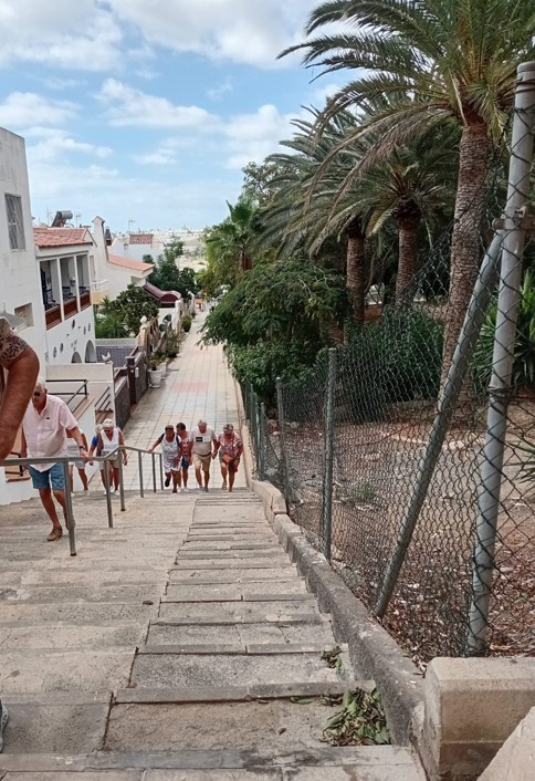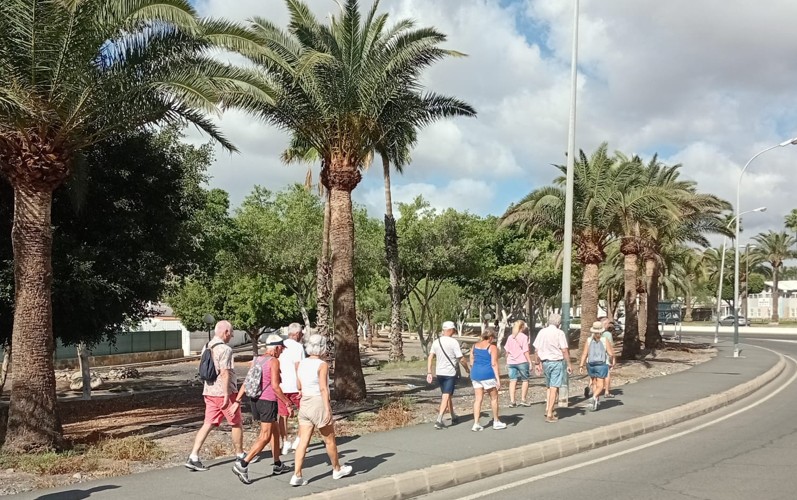 De route zou een makkelijke zijn en kronkelde over Playa del Inglés en San Fernando met lichte en makkelijk te nemen hoogteverschillen. Drie stopplaatsen deden we aan, dus in de rugzakken meegenomen thermosflessen met warme koffie bleken uitsluitend ballast te zijn.