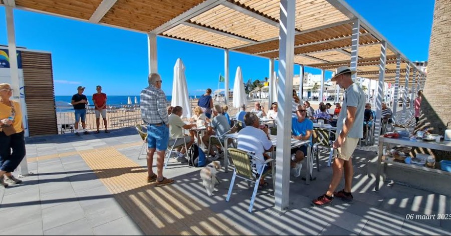 Ik hoorde bij de laatste groep en kan zeggen, dat we een gezellige middag hebben gehad. We waren met 8 personen bij restaurant Mephisto boven in Centro Comercial. De bediening was super vriendelijk, het eten en drinken was erg goed! Uitgezonderd de koffie helaas… Voor mij was het de 2e wandeling met de club en ik heb aardige mensen leren kennen. Hoop er volgend jaar weer bij te zijn en jullie ook in goede gezondheid weer te ontmoeten.
